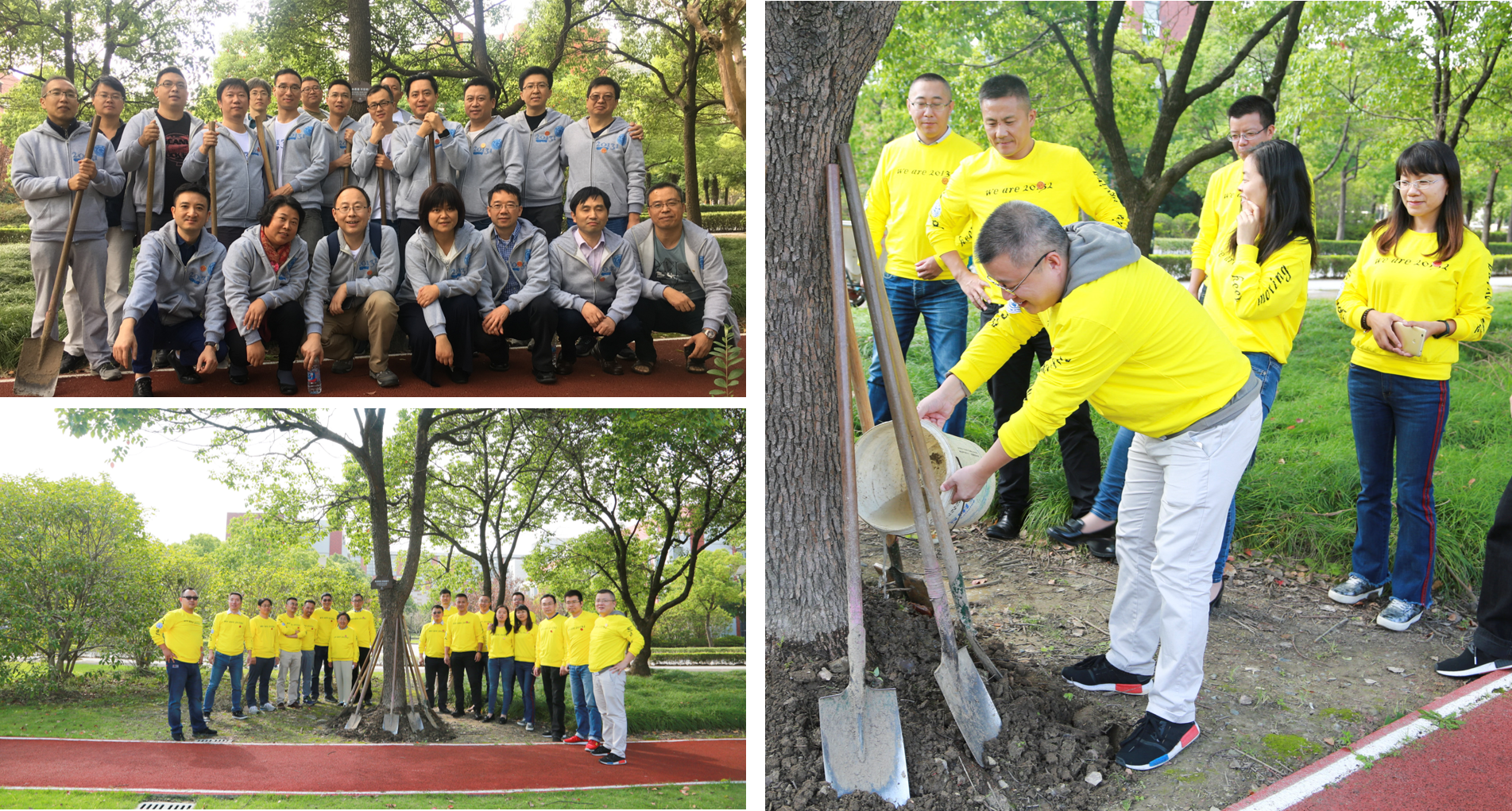 学院党委副书记顾希垚向校友们介绍了母校近年来的发展变化。落其实者思其树,校友们来到闵行校区校友林,各班认捐了一棵香樟树,继续陪伴母校成长,见证历经弥新的同窗情。